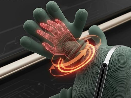 Handy-Max combina l'avanzata Terapia Termica Dual Heat con zona di compressione calda a forma di palmo per un rilassamento muscolare più profondo .